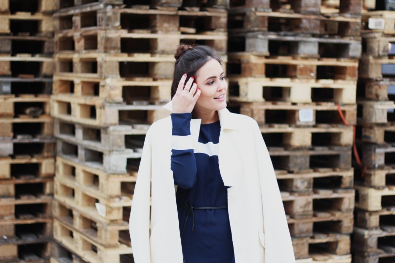 Ich liebe helle, bunte und freundliche Farben, wenn der Himmel so weiß und grau ist. Der weiße Wollmantel wertet mein Outfit auf, wirkt lässig, aber trotzdem edel. Helle oder bunte Farben sind momentan bei Mänteln extrem angesagt. Ob rosa, hellblau, blau oder weiß… wer Mantel trägt, kann sich diese Saison etwas trauen. Wollmäntel sind sowieso super diese Saison und können auch noch bei wärmeren Temperaturen toll kombiniert werden!